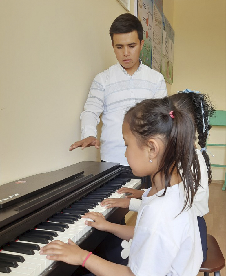 Musiqa (fontepiano, torli cholg‘ular, estrada cholg‘u ijrochiligi,xalq cholg‘ulari, damli va zarbli cholg‘ular, estrada cholg‘u ijrochiligi, an’anaviy xonandalik, akademik xonandalik, estrada xonandaligi) yo‘nalishlari buyicha musiqa ritmiga moslashishi, qo‘shiq aytishi,musiqani eshitishi va eslab qolishi;