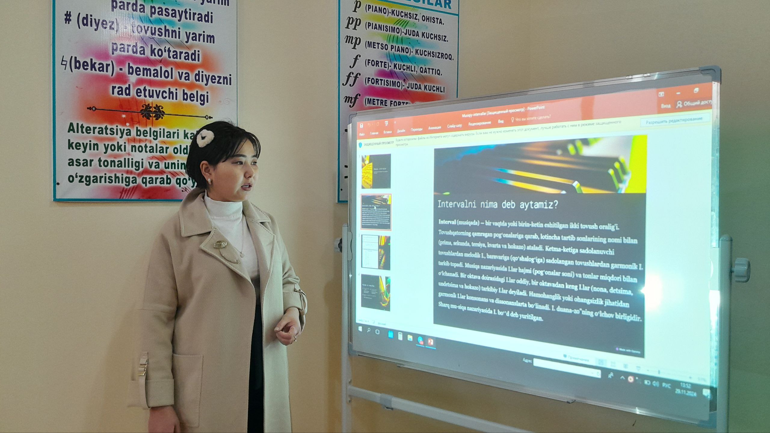 «Musiqiy intervallar» mavzusida bir soatlik uslubiy ma’ruzasi bo’lib o’tdi.